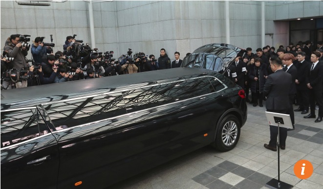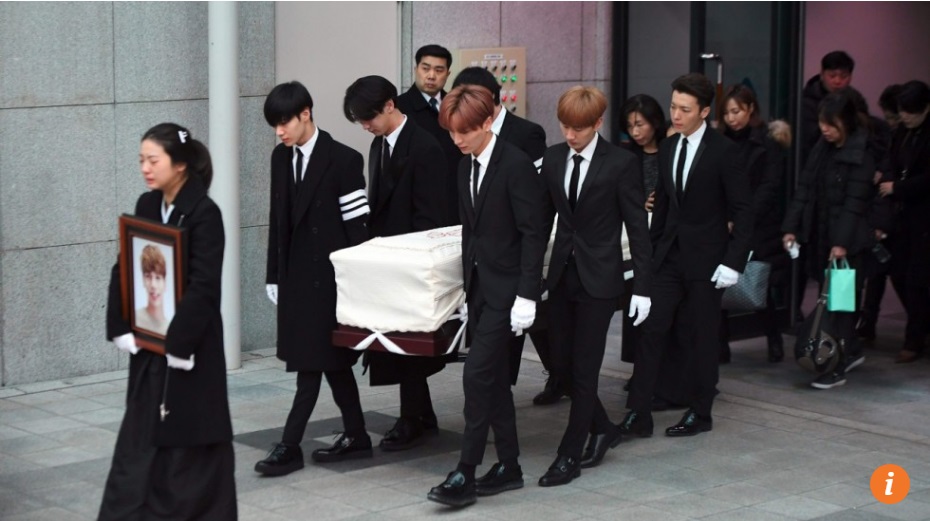 Tubuh Jonghyun dibawa ke pemakamannya dari Asan Medical Center di Seoul dimana tempat itu ia telah terbaring di tempat istirahatnya yang terakhir.