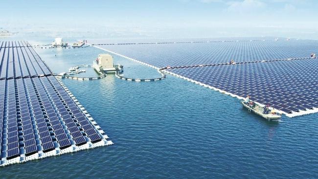 Pembangkit listrik tenaga surya apung terbesar di dunia telah selesai dan terhubung ke jaringan listrik lokal di provinsi Anhui China pada Mei 2015.