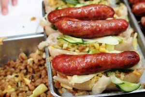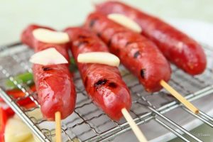 Berair dan sedikit manis, sosis babi ini biasanya dipanggang dan disajikan baik di atas stik atau dalam sosis beras ketan untuk membuat “sosis besar yang membungkus sosis kecil” (大肠 包 小肠). Kadang-kadang mereka bahkan dipasangkan dengan satu siung bawang putih untuk tendangan ekstra. Pasar malam di Taiwan klasik!