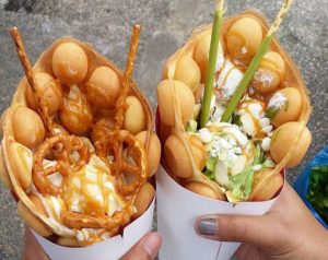 Camilan ikonik dari Hong Kong ini mengeluarkan aroma harum telur dan biasanya dilipat dan disajikan dalam kantong kertas jika Anda sedang bepergian. Mirip dengan wafel tradisional, mereka dibuat dengan menuangkan adonan ke besi wafel sebelum ditinggalkan untuk mendinginkan pada cetakan kawat.