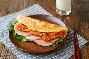 Sebagian kue, sebagian pancake, snack Taiwan berminyak ini secara tradisional adalah makanan sarapan tetapi bisa dinikmati kapan saja sepanjang hari. Biasanya digoreng di atas wajan datar, banyak vendor akan memberi Anda pilihan untuk menambahkan telur, selada, dan bacon.