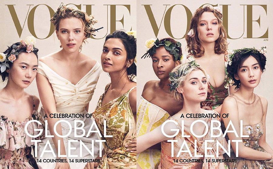 Vogue edisi April menampilkan 14 selebritis wanita dari seluruh dunia, termasuk aktirs AS Scarlett Johansson, aktris Prancis Léa Seydoux, Bae Doona dari Korea Selatan, dan bintang pop China Angelababy, atau Yang Ying dalam bahasa Mandarin.