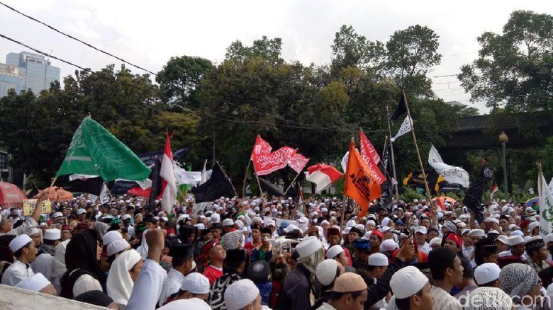 Perwakilan pendemo rencananya ditemui pihak Bareskrim. Massa berdemo menuntut proses hukum terhadap Sukmawati atas puisi yang dinilai menodai agama.