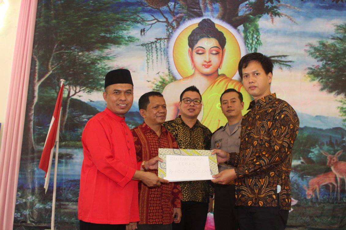 Dalam kesempatan itu, juga diserahkan bantuan pembangunan gedung Sekolah Minggu Buddhis dari Bimas Buddha Kementerian Agama Propinsi Kalimantan Barat, untuk Vihara Buddha Maitreya Tebas, yang diserahkan oleh Bupati Sambas, disaksikan Pembimas Buddha, Narioto, Kapolres Sambas, AKBP. Cahyo, dan Ketua Panitia Waisak Bersama 2562 BE, Kabupaten Sambas, Siet Cin Cung.