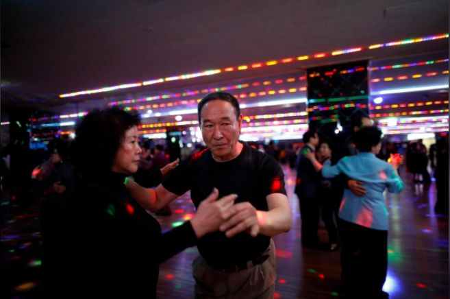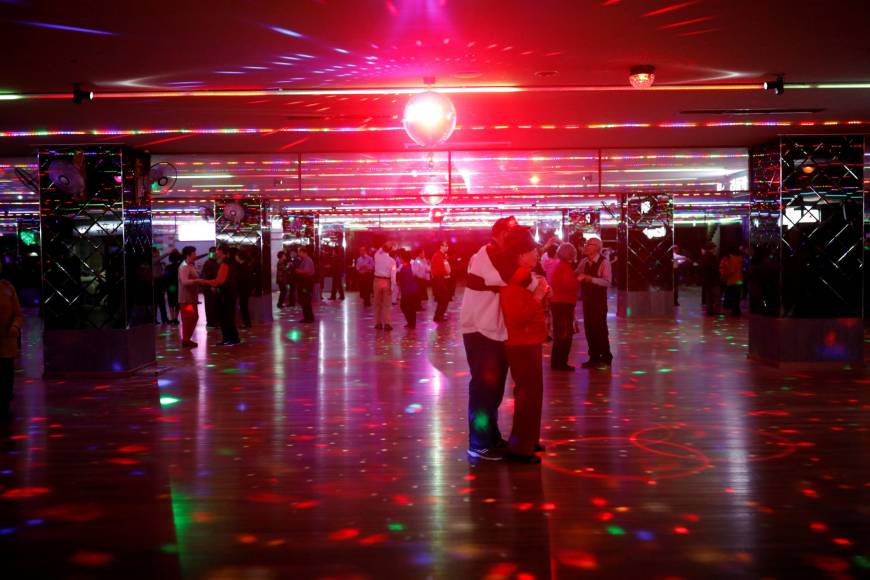 “Apa lagi yang akan saya lakukan sepanjang hari? Keluargaku sibuk dengan pekerjaan. Aku benci pergi ke pusat-pusat rumah lansia karena yang mereka lakukan hanyalah merokok, ”kata Kim, mengenakan baret saat dia duduk di bangku di tepi lantai dansa yang dihias dengan lampu-lampu peri dan bola cermin.