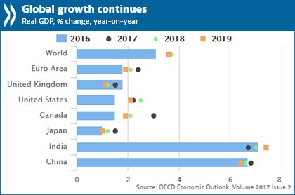 Ekonomi dunia mengalami peningkatan di tahun 2017 dan akan mencapai titik tertinggi dalam 8 tahun terakhir berdasarkan data dari Organisation for Economic Co-operation and Development. Namun masih diperlukan investasi dari sektor pribadi untuk terus meningkat hingga tahun 2019 nanti.