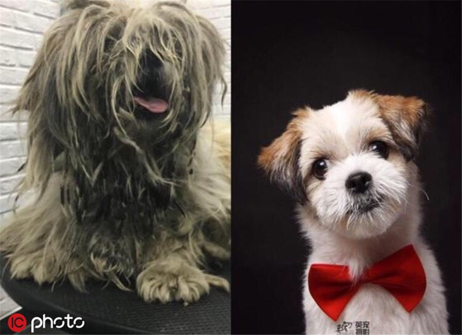 “Kamu tidak akan percaya ini adalah foto-foto anjing yang sama,” kata Zhang, menunjuk pada dua gambar yang menunjukkan seekor anjing sebelum dan sesudah make-over total. “Hewan-hewan merasa jauh lebih bahagia jika seseorang peduli pada mereka.”