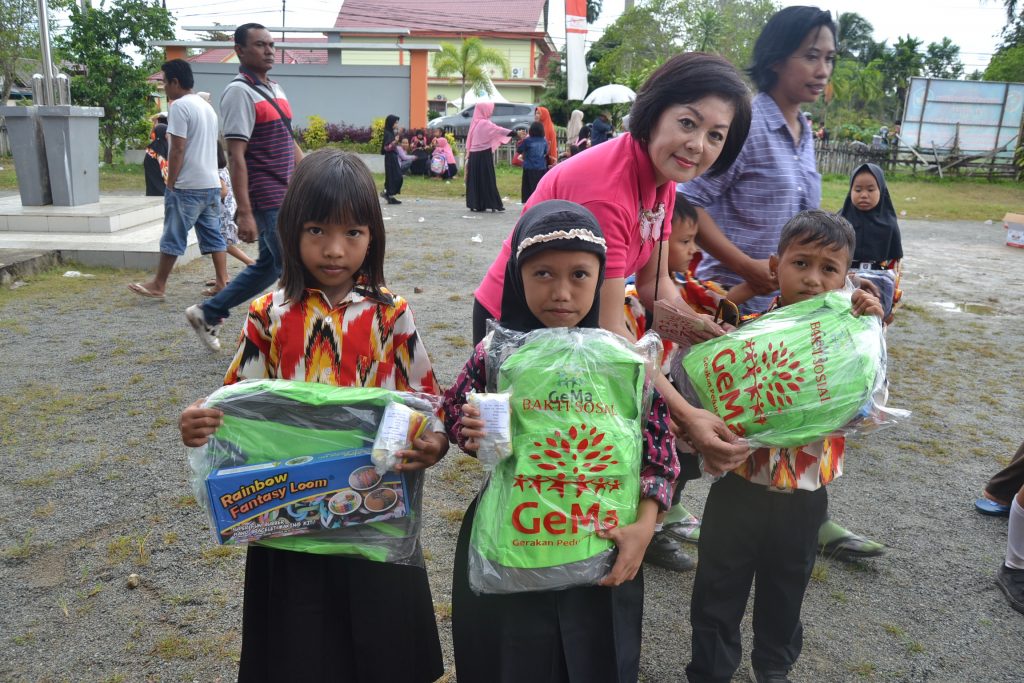 Singkawang-Harian InHua. Usai melaksanakan baksos pembagian 1.550 tas dan perlengkapan sekolah, Gerakan Peduli Sesama (GEMA) Jakarta, kembali menyelenggarakan kegiatan serupa berupa pembagian 160 unit sepeda, tas, perlengkapan sekolah, mainan anak-anak dan obat-obatan bagi siswa-siswi dari keluarga kurang mampu di Kabupaten Mempawah.