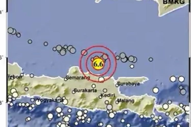 Dalam laporannya, gempa terjadi di 94 kilometer Barat Daya Bantul, Yogyakarta dengan kedalaman 12 kilometer.