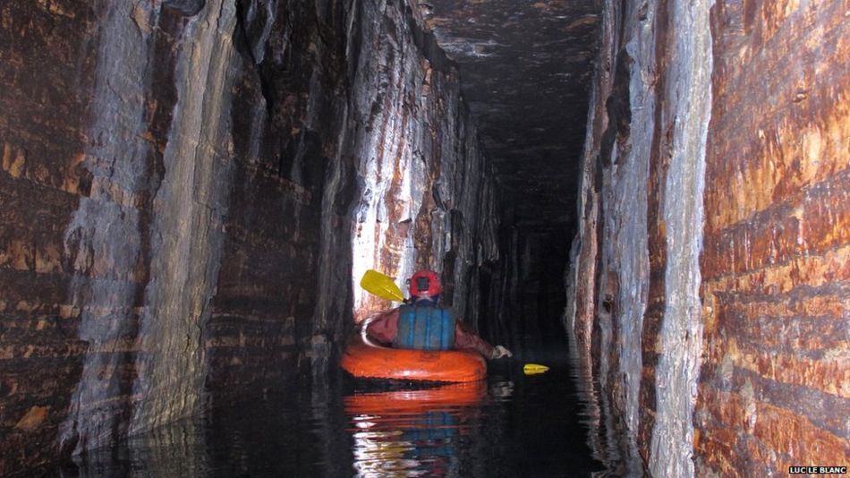 “Sekali dalam seumur hidup” yang ditemukan oleh Luc Le Blanc dan Daniel Caron adalah hasil dari masa percobaan dan kesalahan. Terhubung ke Gua Saint-Léonard, jaringan gua berjarak enam meter dan bagian-bagiannya harus dilalui dengan perahu.