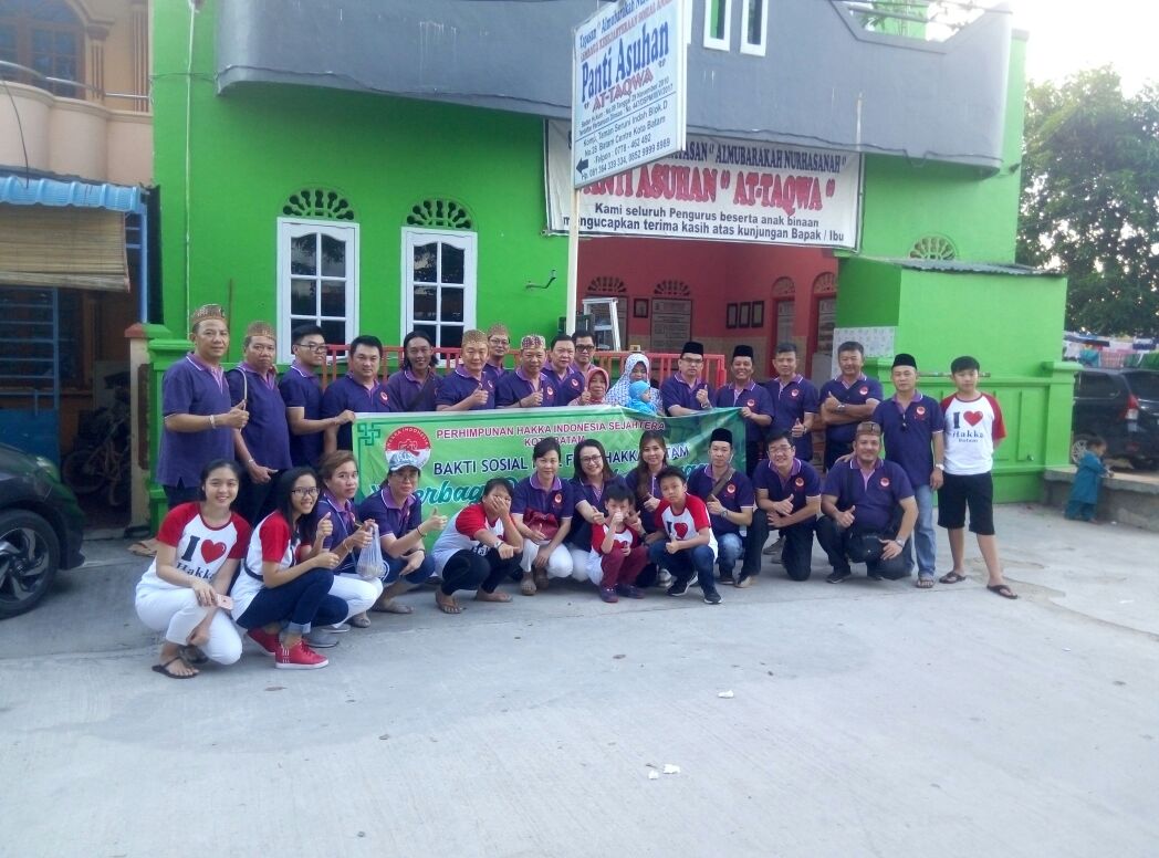 Foto bersama di panti asuhan At-taqwa“Biasanya Hakka Batam melakukan kegiatan pemberian bantuan ini di saat-saat hari besar keagamaan. Seperti Imlek, Idul Fitri dan Natal dengan harapan bisa membantu mereka yang membutuhkan”, tambahnya.