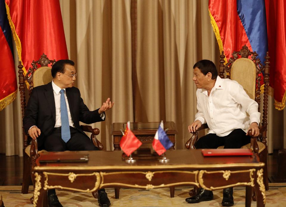 Sebagai bagian dari hubungan Sino-Filipina, Manila yang lemah secara militer telah menyisihkan keluhan tentang kontrol China atas Scarborough Shoal, sistem terumbu yang kaya sumber daya di lepas pantai Pulau Luzon di zona ekonomi eksklusif Filipina. Itulah sumber utama dari perselisihan dua arah antara tahun 2012 dan 2016. China pada gilirannya menjanjikan bantuan dan investasi senilai $ 24 miliar untuk Filipina, yang memerlukan bantuan pembangunan infrastruktur senilai $ 167 miliar.