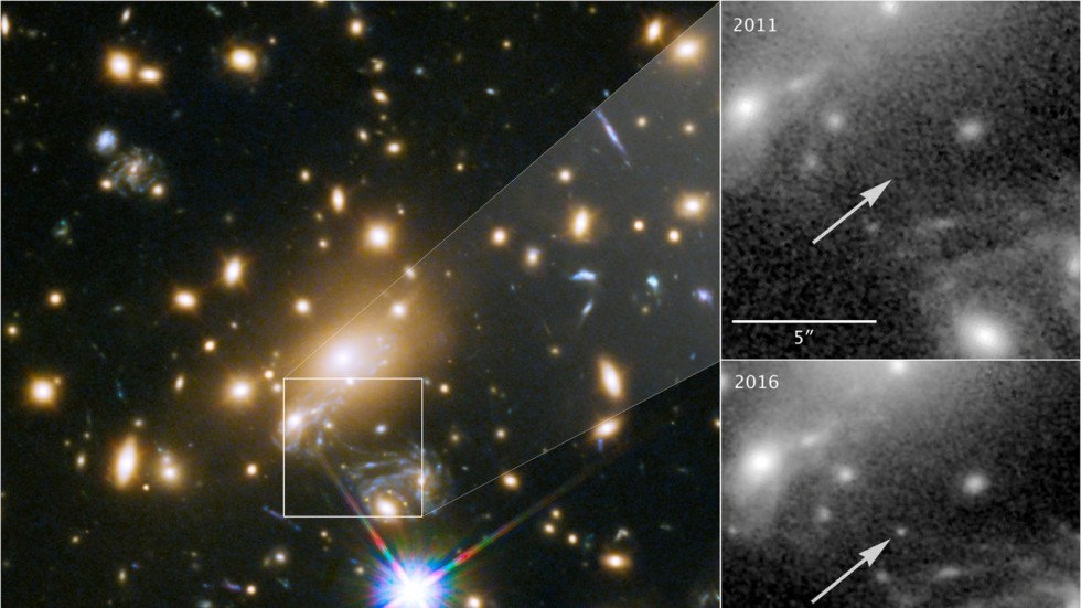 Astronom menggunakan Teleskop Luar Angkasa Hubble telah menemukan bintang terjauh yang pernah diamati, titik terang sejauh 9 miliar tahun cahaya. Penemuan ini membutuhkan penyelarasan yang tak disengaja dari gugus galaksi masif. Cluster itu membelokkan cahaya bintang, menekuknya ke Bumi sambil memperbesar bintang 2.000 kali.