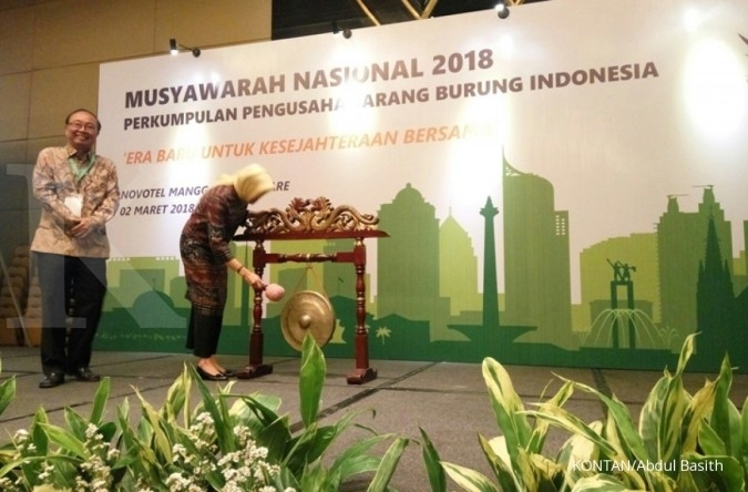 Ketua Umum Perkumpulan Pengusaha Sarang Burung Indonesia (PPSBI) Boedi Mranata dan Kepala Badan Karantina Pertanian, Kementerian Pertanian (Kemtan) Banun Harpini meresmikan Musyawarah Nasional PPSBI, di Ballroom Novotel Mangga Dua Square, Jakarta, Jumat (2/3). KONTAN/Abdul Basith ---- Sempat pada masa sulit, ekspor sarang walet terus tumbuh - PPSBI diharapkan bangun tata niaga sarang walet