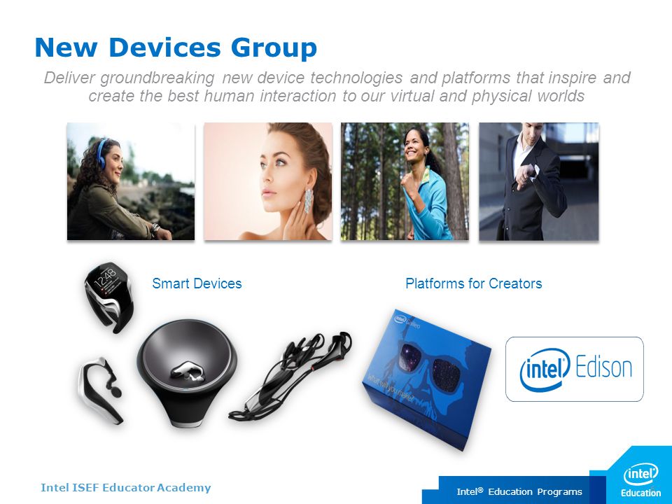 CEO Intel Brian Krzanich mengumumkan pembentukan grup tersebut dalam sebuah memo pada tahun 2013, segera setelah mengambil alih dari Paul Otellini. Setelah reorganisasi pada tahun 2015, New Devices Group berada di bawah Grup Teknologi Baru, yang berada di bawah Segmen Bisnis Lain-lain pada laporan laba Intel.