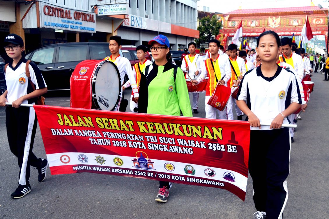 Jalan Sehat Kerukunan yang mengambil tema Bertindak, Berucap, Berpikir baik memperkokoh keutuhan bangsa ini, tidak hanya diikuti panitia Waisak Bersama yang berasal dari majelis-majelis agama Buddha, tetapi juga diikuti pelajar SD, SMP, SMA dan SMK yang ada di Kota Singkawang.