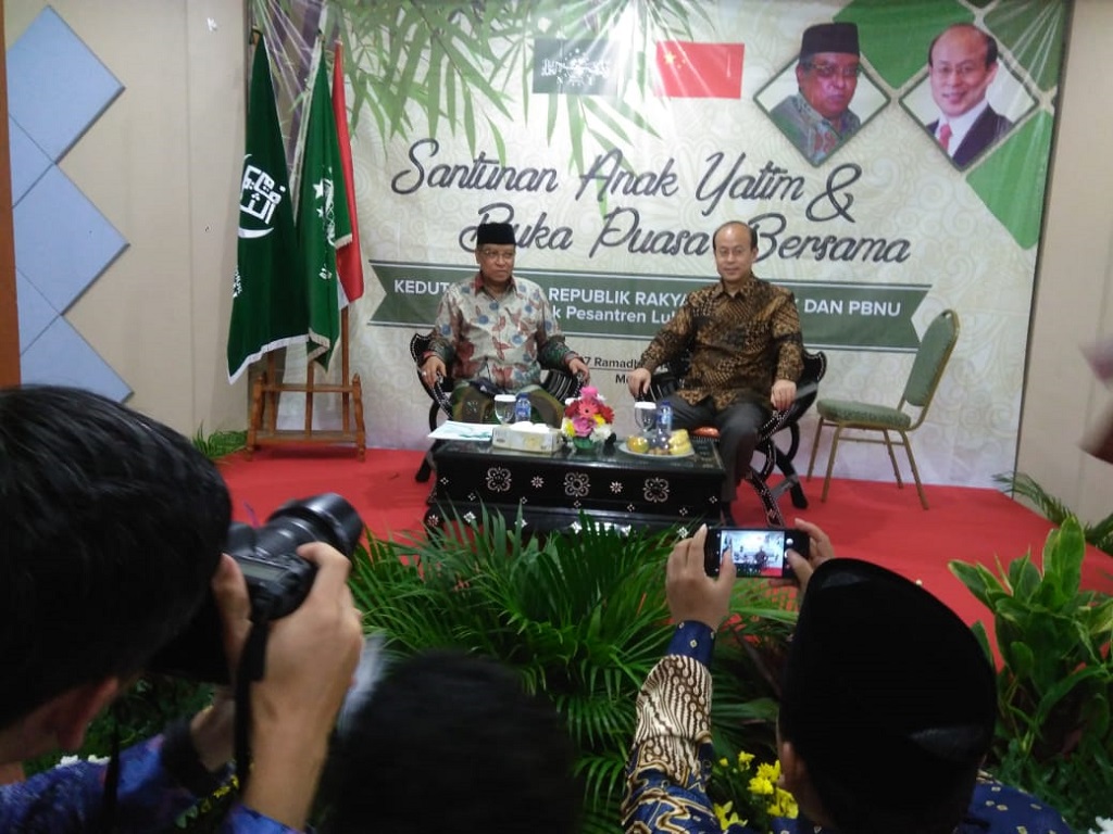 “Saya merasa bergembira datang ke sini untuk santunan anak yatim dan buka bersama Kiai Said,” kata Qian dalam sambutannya.