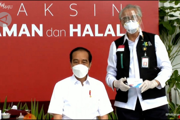 Menurut Presiden Jokowi, vaksinasi perdana tersebut dilakukan setelah mendapat izin penggunaan darurat atau “Emergency Use Authorization” dari BPOM dan keluarnya fatwa halal dari MUI.