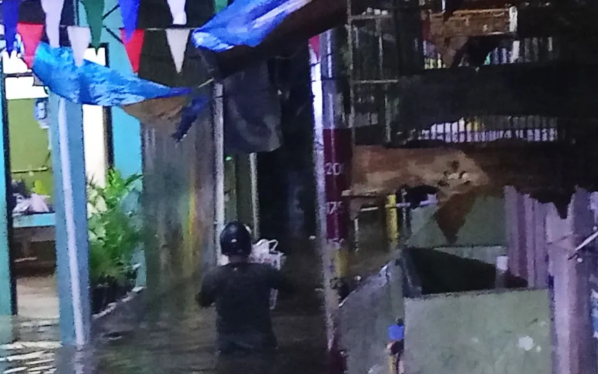 Banjir mulai naik sejak sore hari akibat hujan deras dengan durasi yang cukup lama. Pada pukul 16.00 WIB, ketinggian air masih berada di angka 75 cm, namun terus meningkat hingga malam hari.