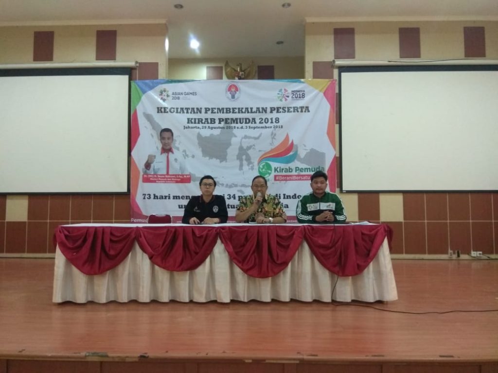 (Harian Inhua) Sebelum berangkat mengelilingi Indonesia, 88 orang peserta inti Kirab Pemuda 2018 yang berasal dari berbagai daerah Indonesia pada tanggal 2 September 2018 berkumpul di PP PON, Cibubur untuk menjalani pembekalan.