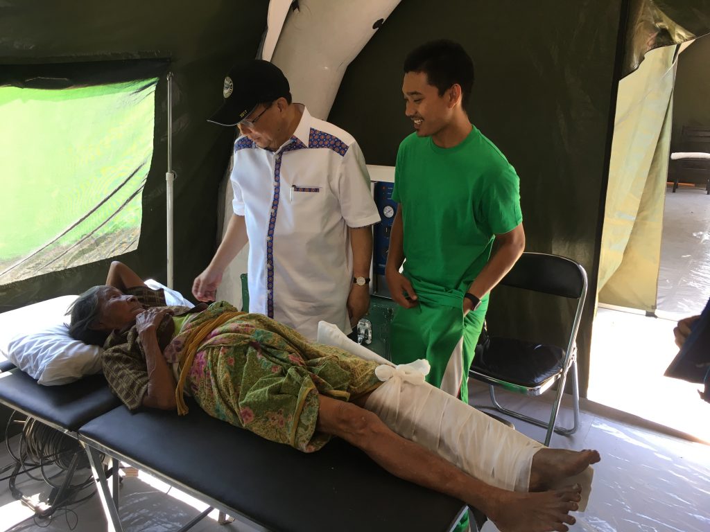 Pada kesempatan itu, Teddy Sugianto mengunjungi tenda kesehatan TNI dan memberi semangat kepada seorang nenek yang sedang dirawat karena mengalami patah kaki kiri terkena runtuhan bangunan rumah. Sementara Sekjen Ulung Rusman berdiskusi dengan Bhante Indadaro dari Vihara Buddhavamsa Lombok Utara dan berkoordinasi dengan Danrem 162/WiraBhakti Kolonel Czi Ahmad Rizal Ramdhani mengenai pembukaan dapur umum di desa yang terkena gempa.