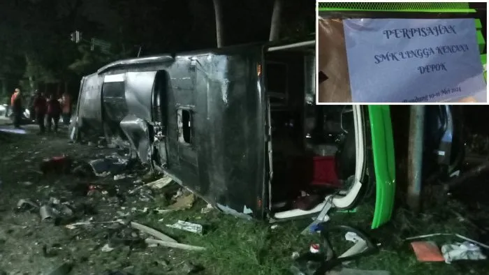 Bus pariwisata yang ditumpangi rombongan pelajar SMK Lingga Kencana Depok mengalami kecelakaan di kawasan Ciater, Subang, Jawa Barat, pada Sabtu (11/5). Kecelakaan diduga akibat rem blong.