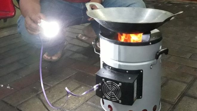 Generator yang bisa dilepas pasang itu mengubah energi panas dari api menjadi listrik.