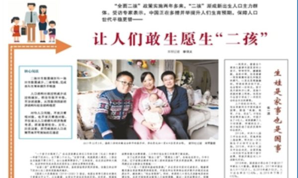 Pemerintah sekarang telah menggunakan Two-Child Policy (全面二孩) di China sebagai standart nasional. Kebijakan ini pada faktanya tidak memberikan efek yang baik.