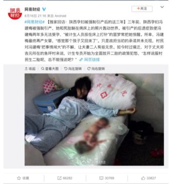 Foto di atas memperlihatkan foto aborsi Feng Jianmei yang membuat gempar dunia media sosial pada tahun 2012. Saat itu, Feng sedang hamil 7 bulan anak keduanya. Sesuai dengan kebijakan One-Child Policy, Feng dan suaminya harus membayar 40.000 Yuan (Rp 84.000.000) untuk kelahiran anak keduanya. Namun, karena kondisi ekonomi, mereka tidak mampu membayar dan harus menjalani aborsi agar tidak membayar biaya tersebut.