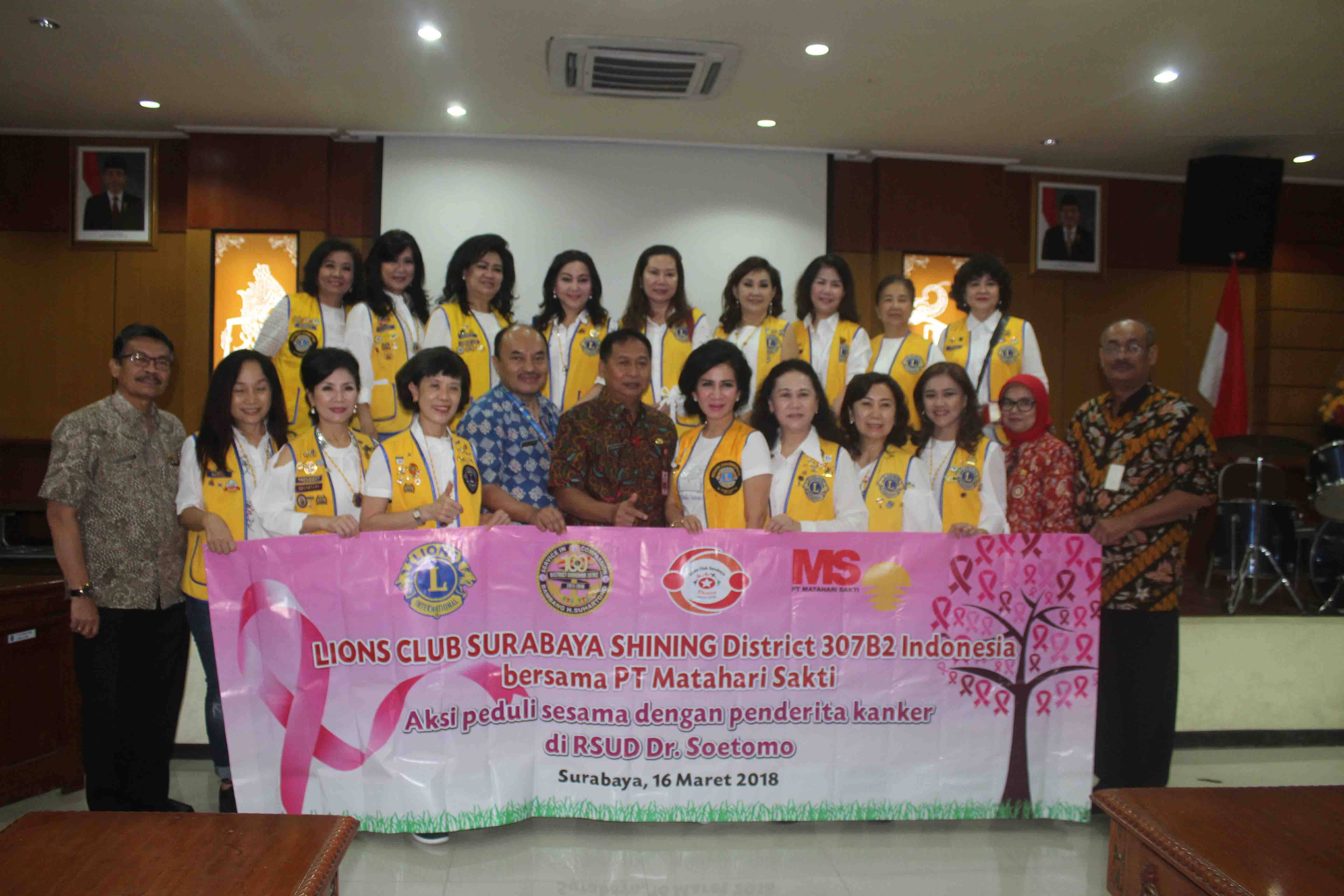 Lions Club Surabaya Shining bersama PT. Matahari Sakti melakukan bakti sosial berbagi kasih dengan menyambangi para penderita kanker di Rumah Singgah Yayasan Kanker Indonesia (YKI) Jatim dan RSUD. Dr. Soetomo Surabaya (16/3). Rombongan LCS Shining dan PT. Matahari Sakti memberikan bantuan berupa angpou dan souvenir kepada seluruh penderita kanker, dana renovasi untuk YKI Jatim dan keperluan yang dibutuhkan seperti pempers, pembalut, serta minyak kayu putih.