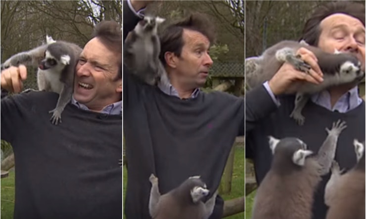 Dikerumun oleh kerumunan primata berbulu mungkin terdengar seperti mimpi yang menjadi kenyataan, namun ternyata, ini lebih merupakan mimpi buruk. Laporan dari Kebun Binatang Banham di Norfolk, seorang wartawan BBC dikuasai oleh lemur, dan oleh “dikerumuni,” maksud saya adalah “digigit dan naik seperti pohon.” Sayangnya untuknya, tapi untungnya bagi seluruh dunia, perjumpaan tersebut berlangsung saat kamera bergulir. Sekarang, cuplikan pria itu dengan putus asa mencoba untuk tetap tenang yang tak terhitung jumlahnya memperlakukannya seperti mainan mengunyah telah menjadi viral.
