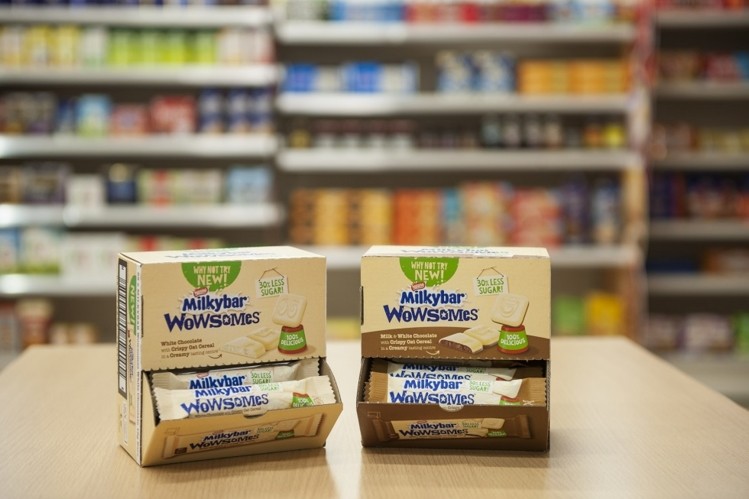 Milkybar Wowsomes sedang diiklankan dengan 30 persen lebih sedikit gula dan mulai dijual di Inggris dan Irlandia minggu depan. Bilah coklat putih tidak akan mengandung pemanis buatan.