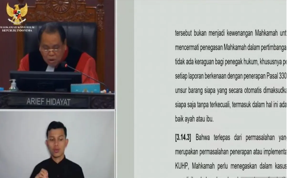 Penegasan itu disampaikan Hakim Konstitusi Arief Hidayat saat membacakan pertimbangan Mahkamah dalam Putusan Nomor 140/PUU-XXI/2023. Perkara tersebut terkait uji materi Pasal 330 ayat (1) KUHP yang dinilai menimbulkan ketidakpastian hukum.