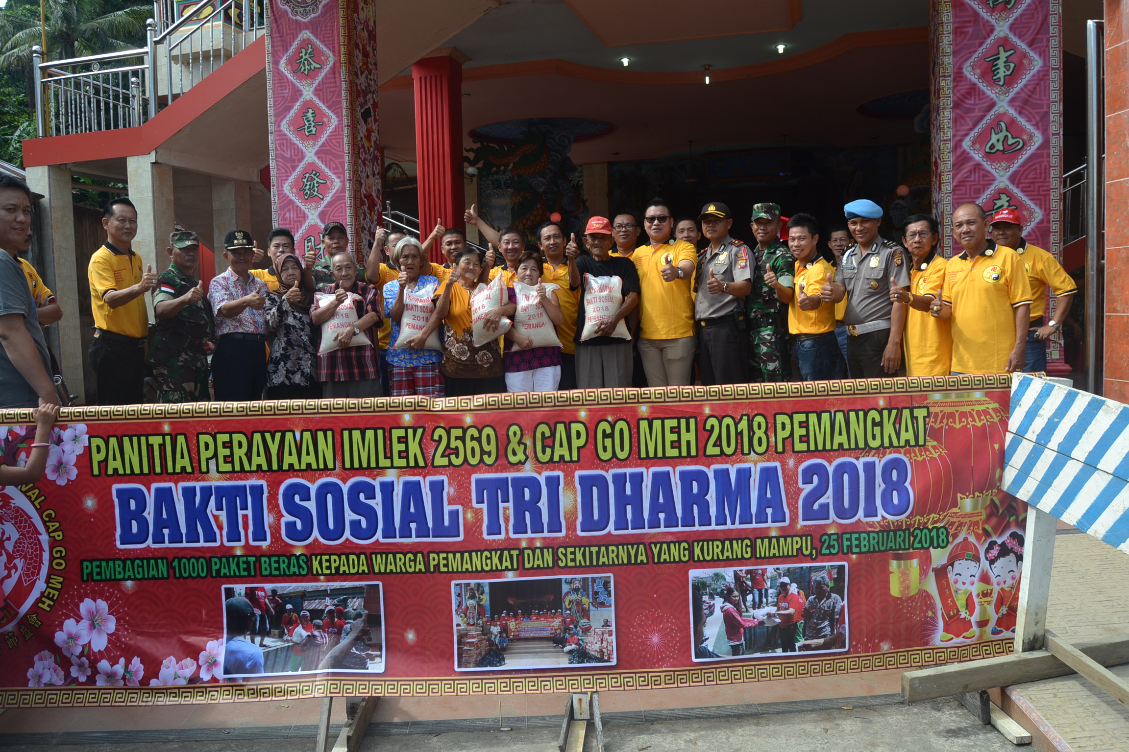 Aksi sosial yang diselenggarakan di Vihara Tridharma Bumi Raya, Jalan Sejahtera, Kecamatan Pemangkat, Minggu, 25 Februari 2018 ini, merupakan salah satu rangkaian kegiatan dalam rangka merayakan Tahun Baru Imlek 2569 dan Cap Go Meh 2018.