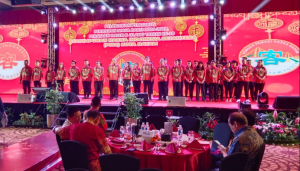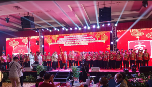 Perhimpunan Hakka Indonesia Sejahtera Kota Batam memperingati Hari Jadinya ke-10, Hut Yayasan Hakka Batam Ke-5th, sekaligus menggelar perayaan imlek bersama, di Ballroom Swiss-Belhotel Harbourbay Batam, Selasa(28/2/2024) malam.