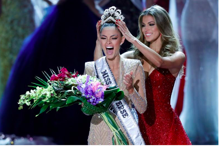 Demi-Leigh Nel-Peters, 22 tahun, menunjukkan senyum bahagianya saat ia dinobatkan sebagai pemenang berasal dari Provinsi Western Cape, Afrika, merupakan lulusan dari Universitas North-West dengan gelar di bidang bisnis manajemen.