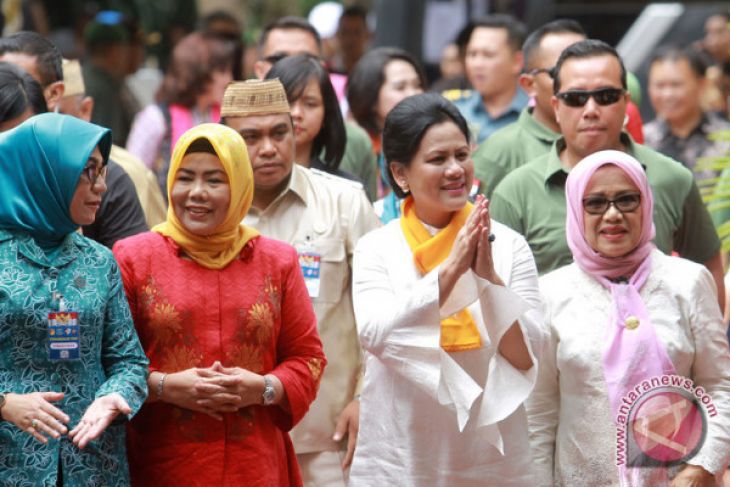 Ibu Negara Iriana Jokowi (kedua kanan) didampingi istri Wapres Mufidah Jusuf Kalla (kanan) dan istri Gubernur Gorontalo Idah Syaidah (kedua kiri) dan Ketua PKK Kabupaten Gorontalo Fory Naway (kiri) tiba di Puskesmas Limboto, Kabupaten Gorontalo, Gorontalo, Senin (22/1/2018). Bersama Organisasi Aksi Solidaritas Era Kabinet Kerja (OASE), Ibu Negara meninjau pemeriksaan IVA dan mengajak perempuan untuk melakukan deteksi dini dalam rangka pencegahan penyakit kanker serviks. (ANTARA /Adiwinata Solihin)