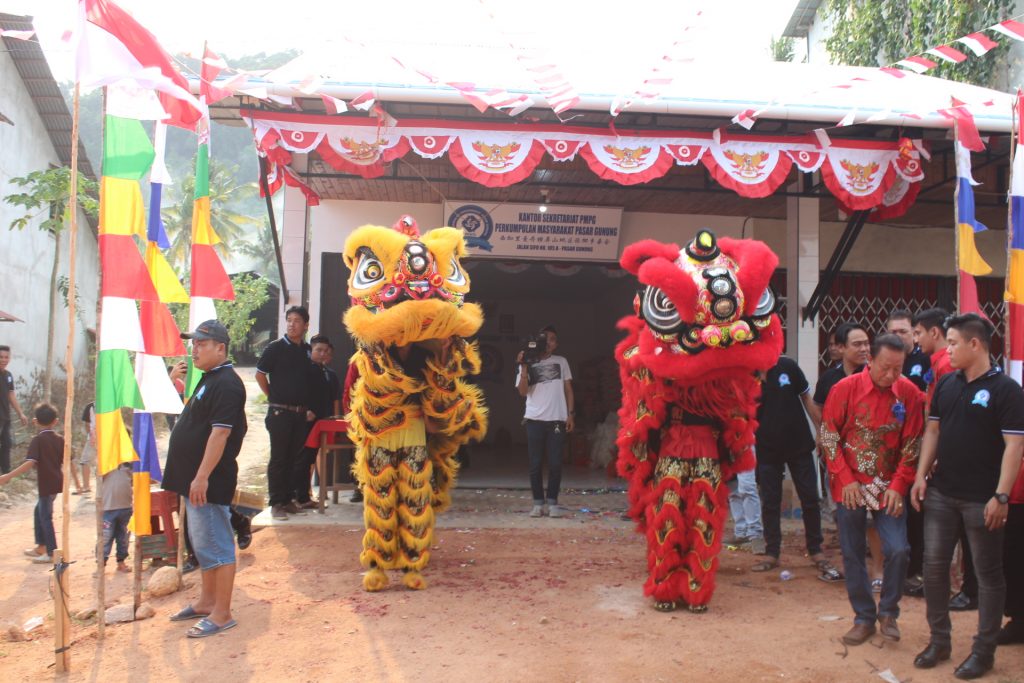 Peresmian gedung sekretariat Perkumpulan Masyarakat Pasar Gunung, juga dimeriahkan atraksi Barongsai yang dimainkan oleh siswa-siswi SMK Mudita Kota Singkawang, penampilan drumband dari SMA Negeri 1 Sei Raya, pelepasan balon dan burung, hiburan musik Sakura Band dan Team Bintang Jakarta, serta jamuan makan bersama. (Rio Dharmawan)