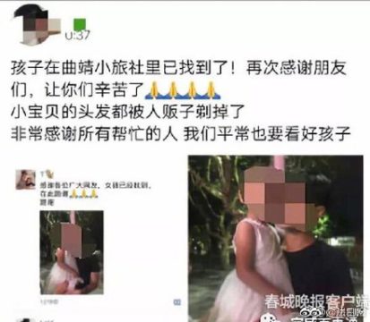 Dengan bantuan polisi dan warga sekitar, anak itu dilihat dibawa oleh mobil mini-van bersama dengan wanita dan anaknya tadi. 15 menit setelah itu, mereka naik kereta dan turun di stasiun Qujing, 60 mil dari tempat itu.
