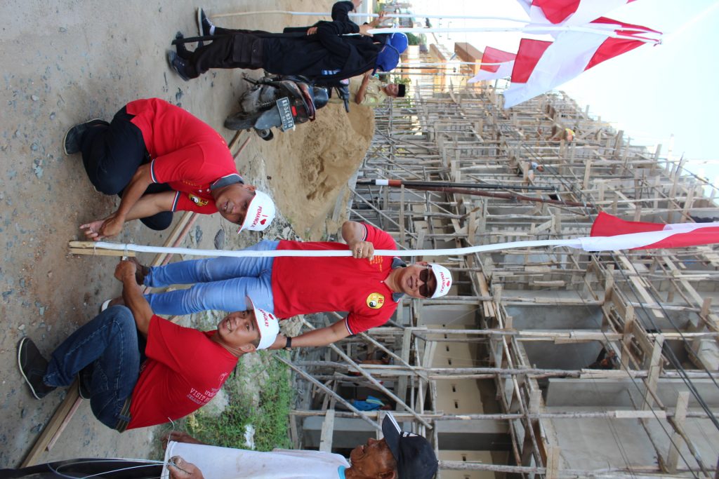 Pemasangan bendera Ini, disebutkannya dilakukan oleh penguurs Tridharma Bumi Raya Pemangkat bersama masyarakat dibantu anggota TNI, Polri, Pemuda Pancasila dan perangkat Desa. (Rio Dharmawan)