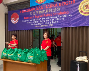 Ketua Hakka Bogor Ibu Jefi Gustini 叶輝云 di dampingi Wakil Ketua Bapak Handoyo 陳新良 dan Bapak Lie Sudibjo 李世城 mengatakan bahwa paket sembako tersebut dikumpulkan atas kepedulian untuk membantu masyarakat sekitar kantor Hakka di jalan Suryakencana kota Bogor.