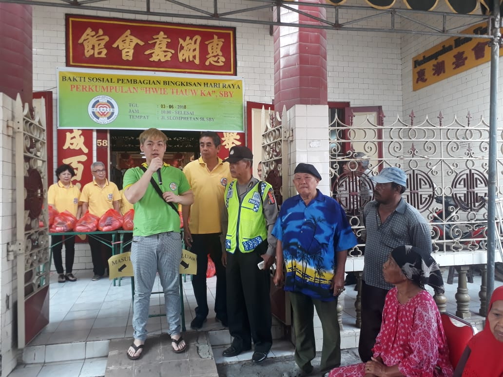 Menjelang perayaan Idul Fitri, banyak orang yang melakukan kegiatan sosial untuk membantu warga yang kurang mampu agar bisa menikmati Hari Raya Idul Fitri dengan baik. Begitu juga yang dilakukan oleh Perkumpulan Hwie Tiauw Ka Surabaya pada hari minggu, 3 Juni 2018 yang lalu.