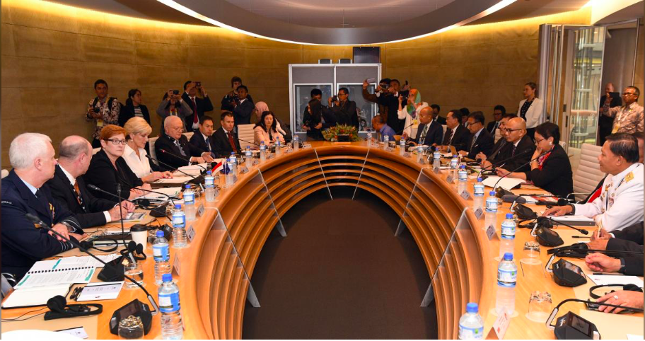 Menteri Luar Negeri Australia Julie Bishop dan Menteri Pertahanan Marise Payne mengadakan pembicaraan dengan rekan-rekan mereka di Indonesia Retno Marsudi dan Ryacudu di Sydney, menjelang KTT Perhimpunan Bangsa-Bangsa Asia Tenggara (ASEAN).