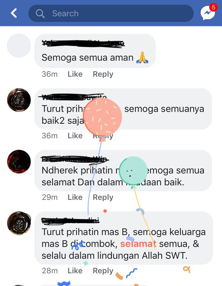 Banyak masyarakat Indonesia yang menulis pesan di Facebook menggunakan kata ‘yang juga dapat berarti ‘aman’ tetapi juga ‘selamat’ atas keberhasilan, telah memicu munculnya animasi perayaan secara otomatis.