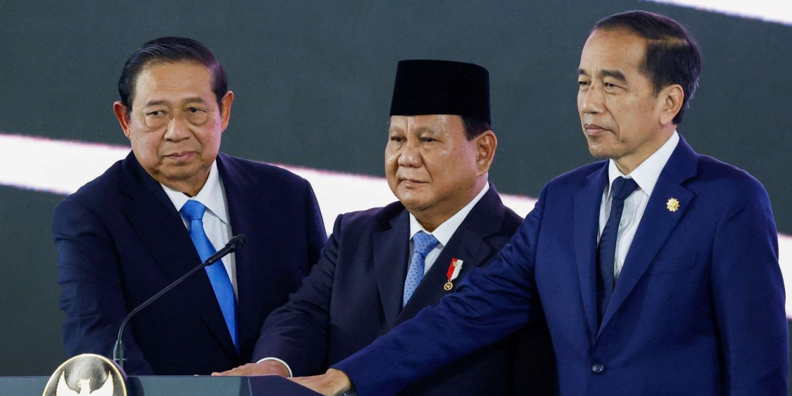 Saat menekan tombol peresmian, Presiden Prabowo diapit oleh Presiden Ke-7 RI Joko Widodo di sisi kiri, dan Presiden Ke-6 RI Susilo Bambang Yudhoyono di sisi kanan.