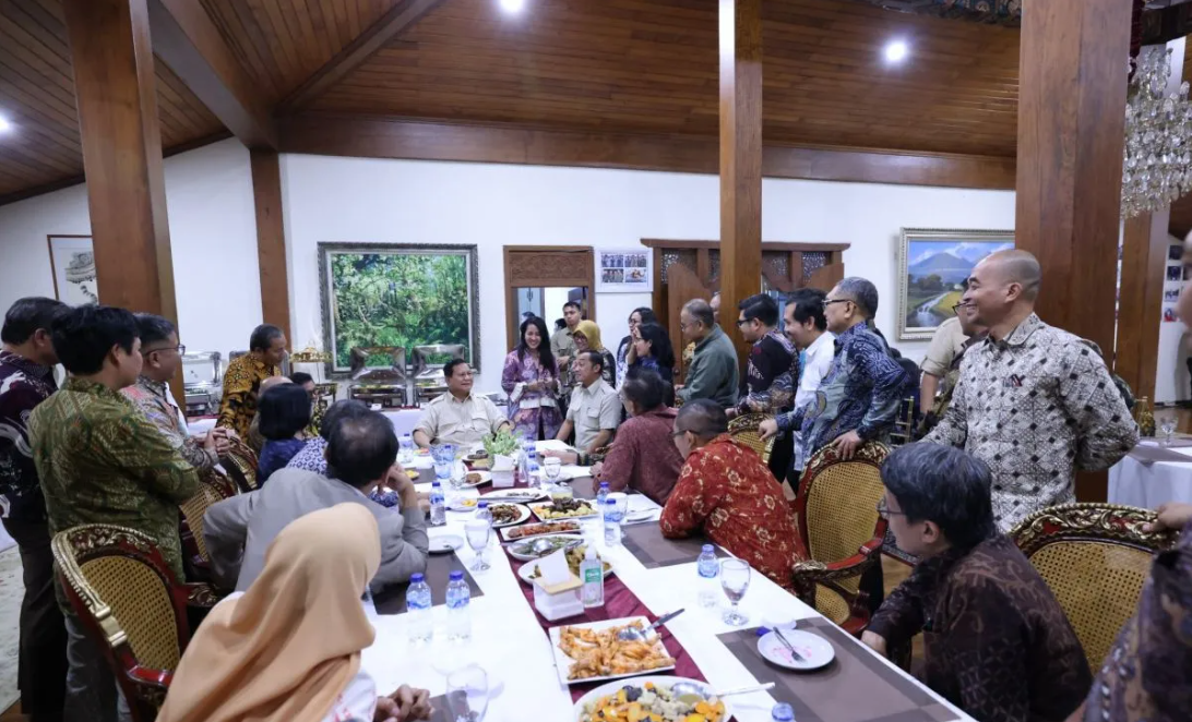 Berdasarkan keterangan resmi dari Tim Media Presiden Prabowo, pertemuan itu diawali dengan makan siang bersama, kemudian diskusi digelar di ruang perpustakaan kediaman Prabowo.
