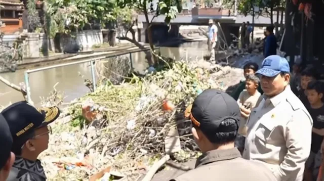 Presiden kemudian lanjut mendekat ke arah sempadan Tukad Badung yang airnya telah surut. Sejumlah prajurit TNI di sisi seberang terlihat bergotong-royong membersihkan sisa lumpur sisa banjir.