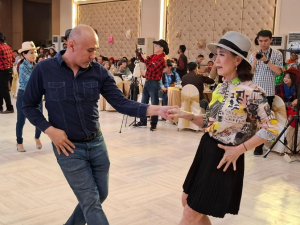 “Bu Dewi berlatih dansa seminggu sekali di sela kesibukan beliau. Stamina Bu Dewi saat membawakan tarian sangat bagus dan enerjik, sehingga terlihat seirama dan luar biasa,” ujar Vincent.