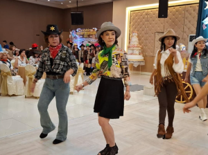 “Acara malam ini bertema Country, saya membawakan sebuah lagu untuk memeriahkan acara, agar semakin meriah dan semua bahagia,” ujar Puspitadewi Prijadi selaku Presiden Direktur PT Matahari Sakti.