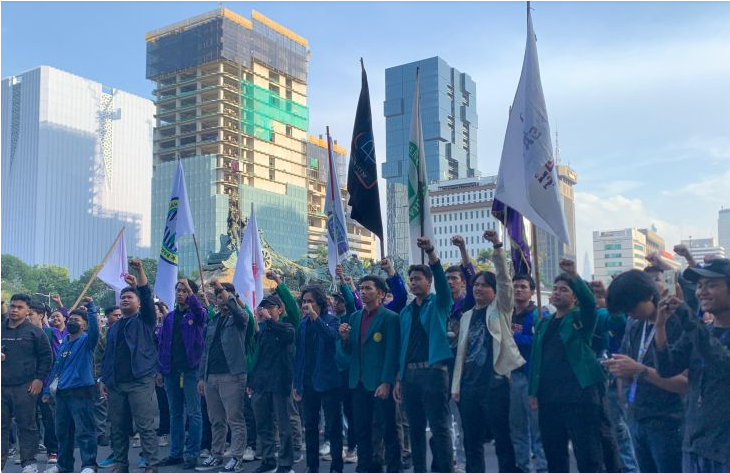 Jakarta – Sebanyak 300 mahasiswa dari berbagai organisasi di Jakarta, Bogor, Depok, Tangerang dan Bekasi (Jabodetabek) menggelar aksi unjuk rasa untuk menolak Pajak Pertambahan Nilai (PPN) 12 persen di kawasan Patung Kuda, Jakarta Pusat, Jumat.
